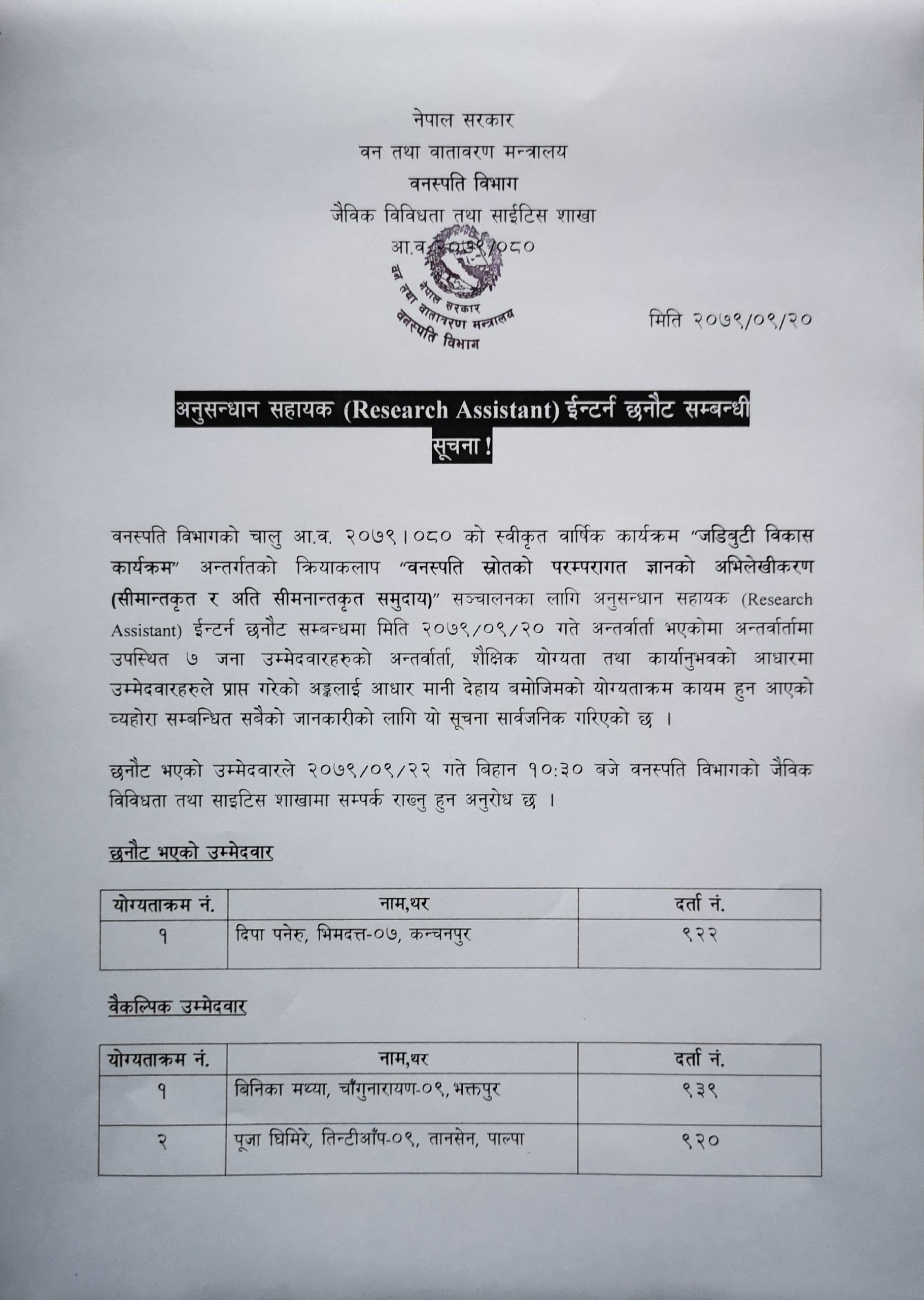 मौजुदा सूचीमा दर्ता गराउने बारेको सूचना |